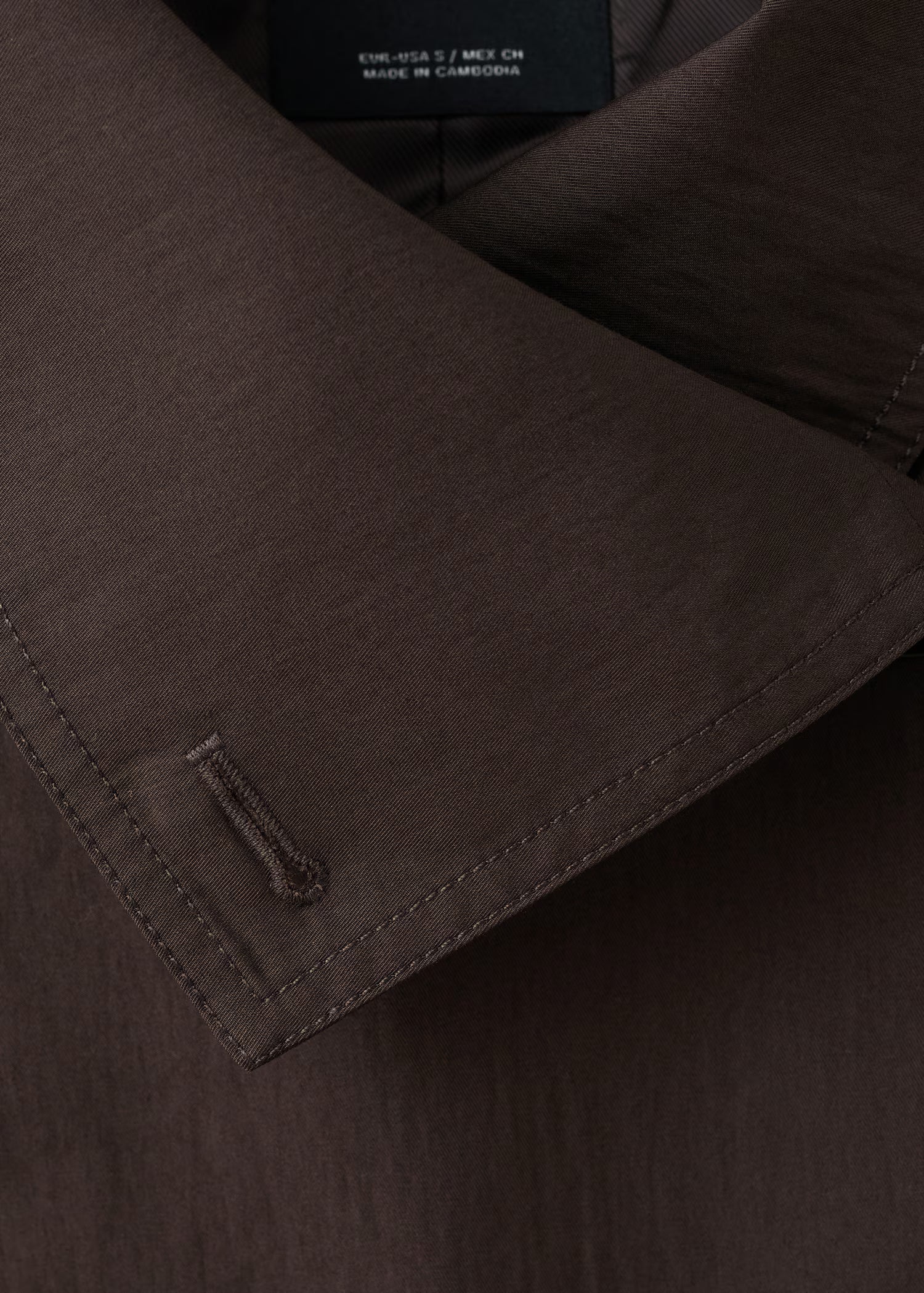 Cotton blend fabric. Straight design. Crop design. Funnel neck. Long sleeves. Two side pockets. Double button fastening. Inner lining. Available Plus.
