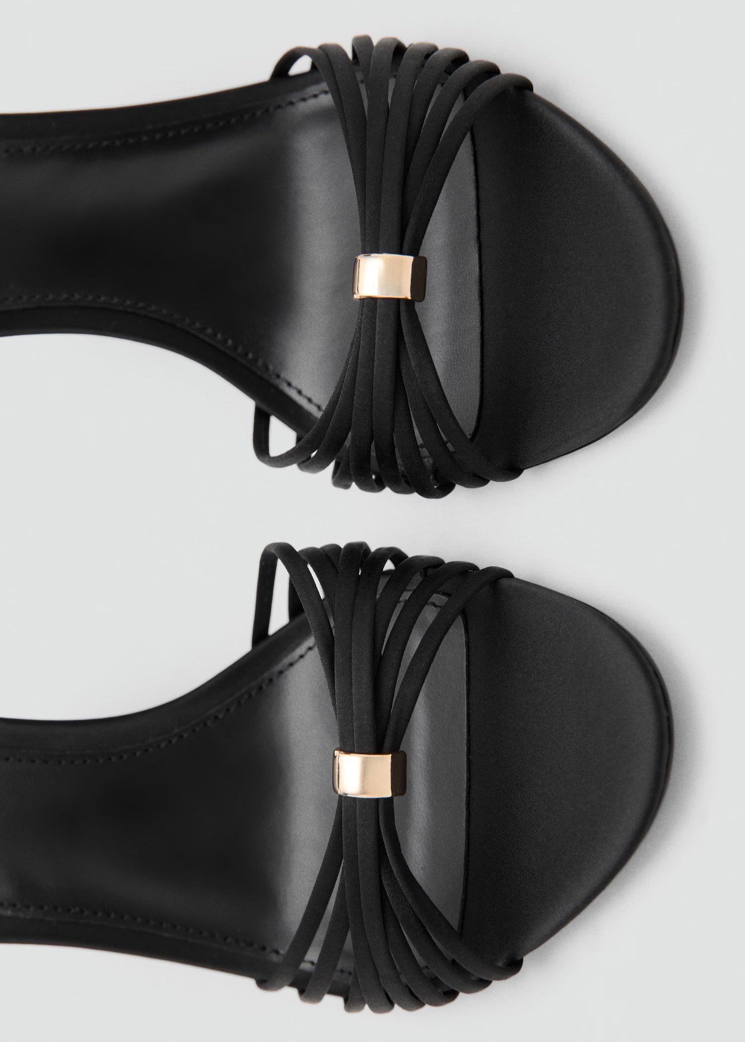 Straps design. Metallic detail. Open toe. Stiletto heel. Buckle closure at the ankle. 10 cm heel.