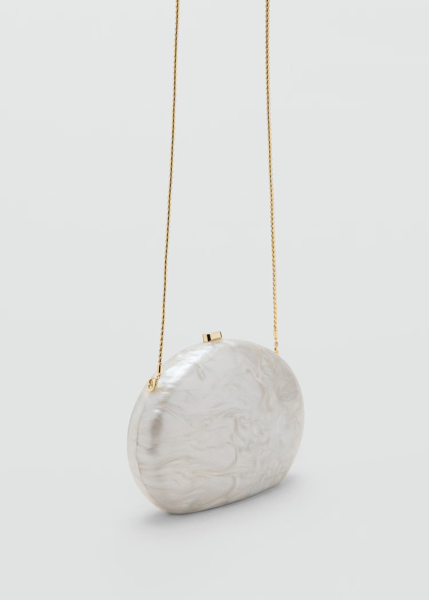 Small size. Rigid design. Clutch style. Long detachable chain strap. Press stud fastening. Inner lining.