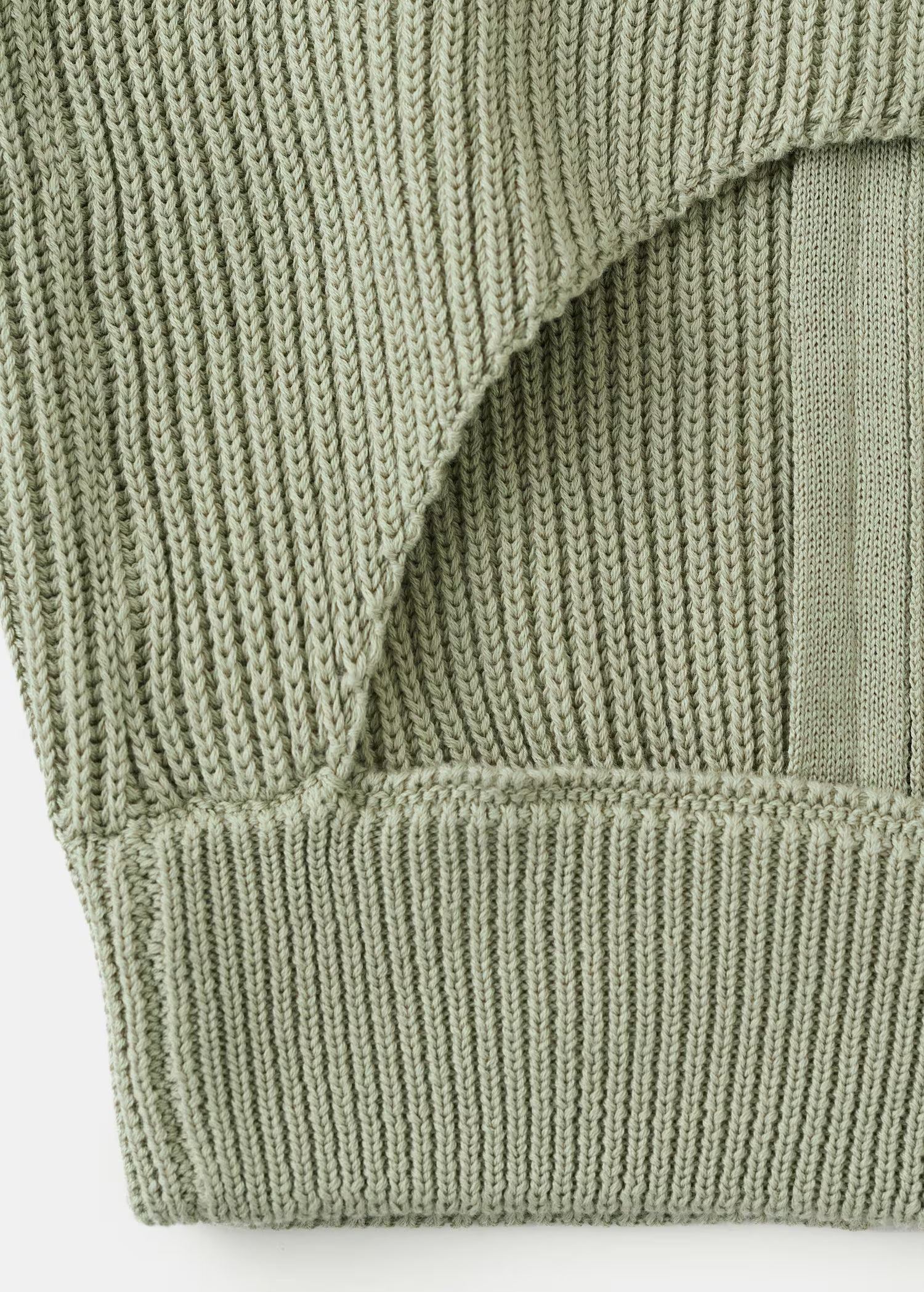 Ribbed knit fabric. Cotton fabric. Straight design. High neck. Sleeveless. Back opening. Front zip closure.
